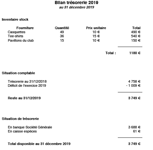 5 – Rapport du trésorier