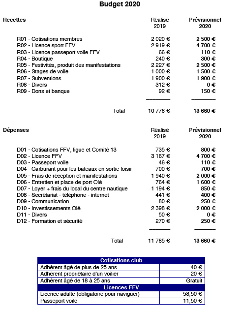 5.2 – Budget prévisionnel et montant des cotisations pour 2020
