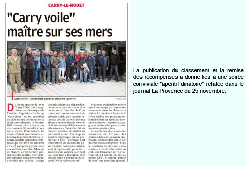 2019 a vu la création du challenge de la côte bleue : 7 régates programmées dont 3 annulées à cause de la météo (vent trop fort). Ce challenge a rassemblé 13 voiliers et 60 équipiers, le début de l’année fut difficile, mais la Frioulaise (régate sur deux jours) avec 8 voiliers et 23 équipiers ainsi que la dernière régate avec 10 voiliers et 27 équipiers furent un succès.