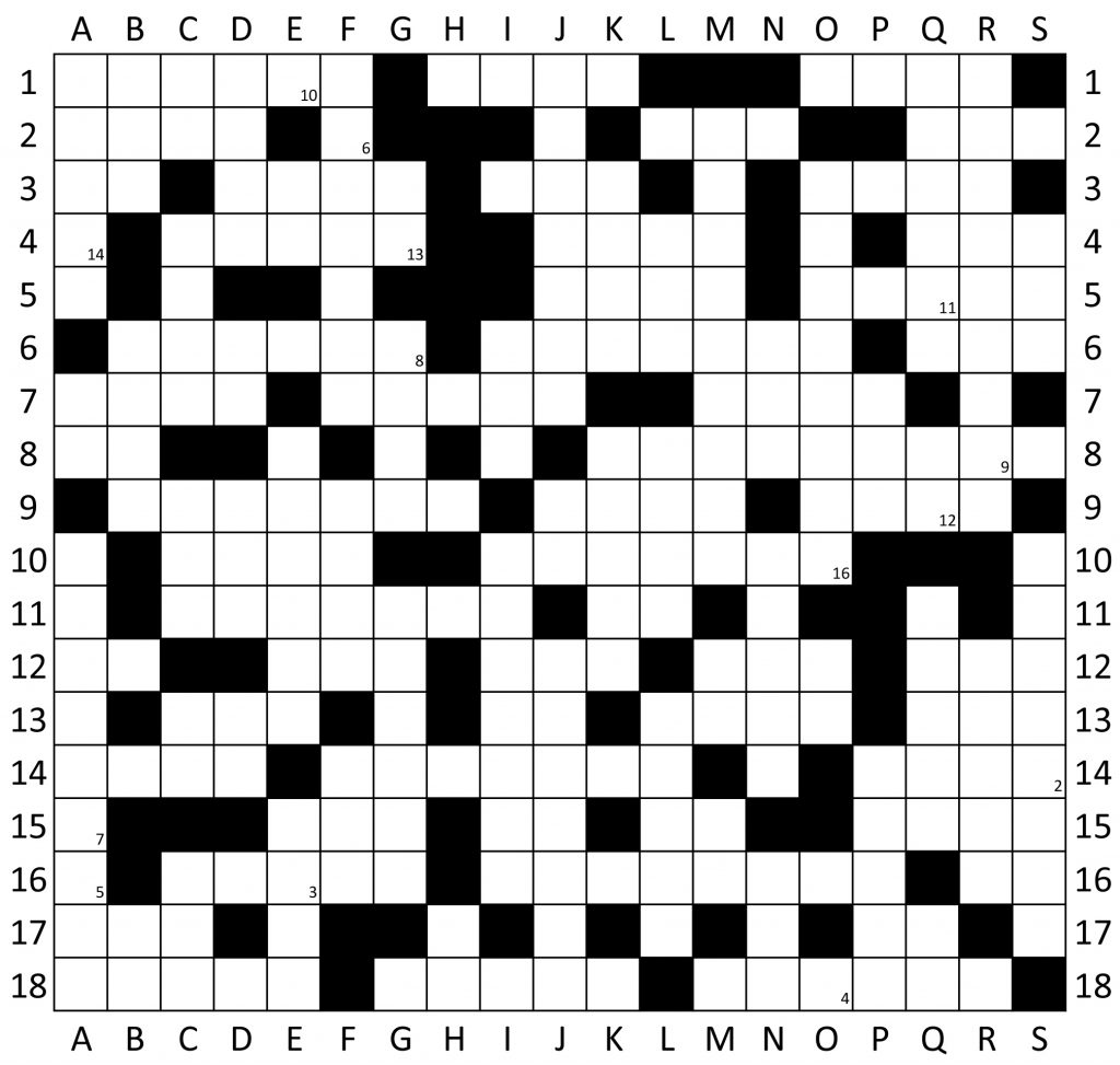 1 – Hommes de mer – Attention à son coup – Lapérouse s’est lancé sur ses traces ; 2 – A prendre au sérieux si « de tempête » – Pointe bretonne – Supporte un navire à terre ; 3 – Ile atlantique – Terrains découverts par la mer – Poisson de Méditerranée (sans tête) – Route transatlantique sur le retour ; 4 – Mer suisse – Sel anglais – Pays natal de l’auteur du « Vieil homme et la mer » ; 5 – Pollution en dispersion près des ports – S’inclinai, pour un bateau ; 6 – Retour d’un navigateur et découvreur génois – Pour la ramener des Antilles, il fallait mieux ne pas être dedans – Avec un « E », invite au voyage avec Beaudelaire ; 7 – Manœuvre de sécurité par mauvais temps – Navigateur disparu lors de la première Route du Rhum – A respirer en cas de mal de mer ; 8 – Au centre de Carry – Navigateur breton recordman en solitaire en 2013 de la traversée de l’Atlantique nord ; 9 – Marin d’exception, amoureux d’une mésange à tête noire – Sa dame facilite le ramage – Prénom du navigateur suisse successeur du 8 horizontal en 2019 ; 10 – India Charlie Mike Echo – Vice-Amiral en Provence, « Amiral satan » en Angleterre ; 11 – Navigateur et artiste plasticien, équipier du 9 horizontal – Premières lettres du prénom de la « petite fiancée » de l’Atlantique ; 12 – Cité bretonne engloutie – Blonde préférée du marin anglais – Pas le meilleur whisky pour le Capitaine Haddock – Autre nom du poisson du 3 horizontal (en entier) – Petit fleuve côtier corse ; 13 – Transmis en cas d’urgence – Le nez du Commandant au bonnet rouge – De raie, par exemple – Mer démontée ; 14 – Navigateur breton surnommé « Le Terrible » – Prénom choisi par le 11 horizontal – Il n’y a pas que les équipières qui la passent pour monter à bord ; 15 – Arrivée sur un récif coralien – Oncle jaune pour opérateur radio anglais – Saint disparu en mer au large des calanques – Boucle à l’extrémité d’un cordage ; 16 – Navigateur canadien, vainqueur de la 1ère Route du Rhum en 1978 – Navigatrice francilienne qui a beaucoup ramé pour réussir – Île de l’attol de Jahuit ; 17 – Hunier en lambeaux – Au large de Hyères, elles ne sont pas d’argent ; 18 – Navigateur breton, « Le Roi Jean » – Petit navire de guerre – Filets utilisés pour la pêche au lamparo.