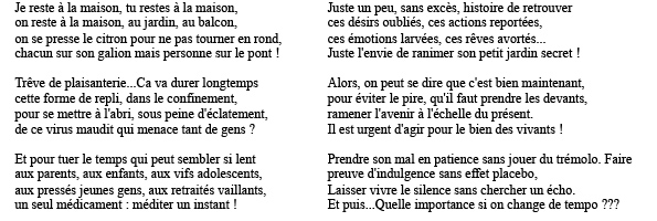 * Peut se chanter sur la mélodie d’Yves DUTEIL « Le petit pont de bois »